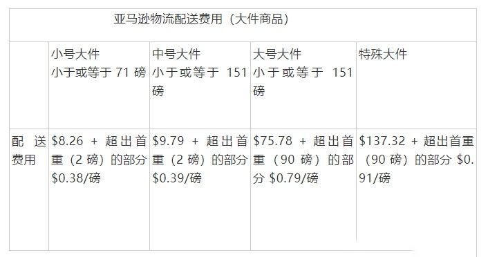 fba訂單配送費(fèi)表一覽(包括標(biāo)準(zhǔn)產(chǎn)品和大件產(chǎn)品的收費(fèi)標(biāo)準(zhǔn)):