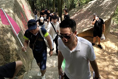 各隊斗志昂揚的從山腳向山頂進發(fā)