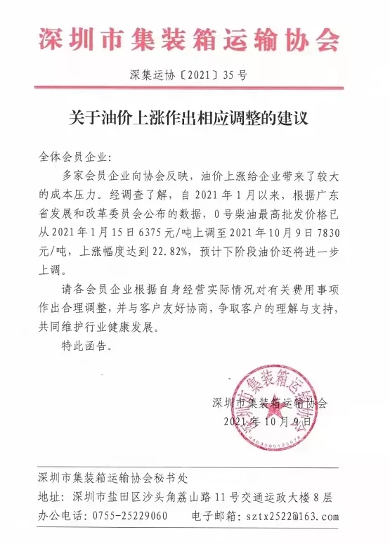 目前,上海、寧波、深圳和廈門等各大口岸所在地的運(yùn)輸協(xié)會陸續(xù)發(fā)聲了,建議并支持各會員企業(yè)根據(jù)實際經(jīng)營情況合理調(diào)整運(yùn)費(fèi),以應(yīng)對油價的上漲并維持行業(yè)的健康良性發(fā)展。